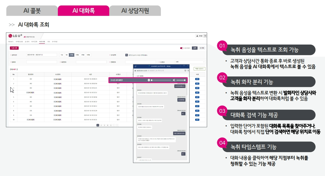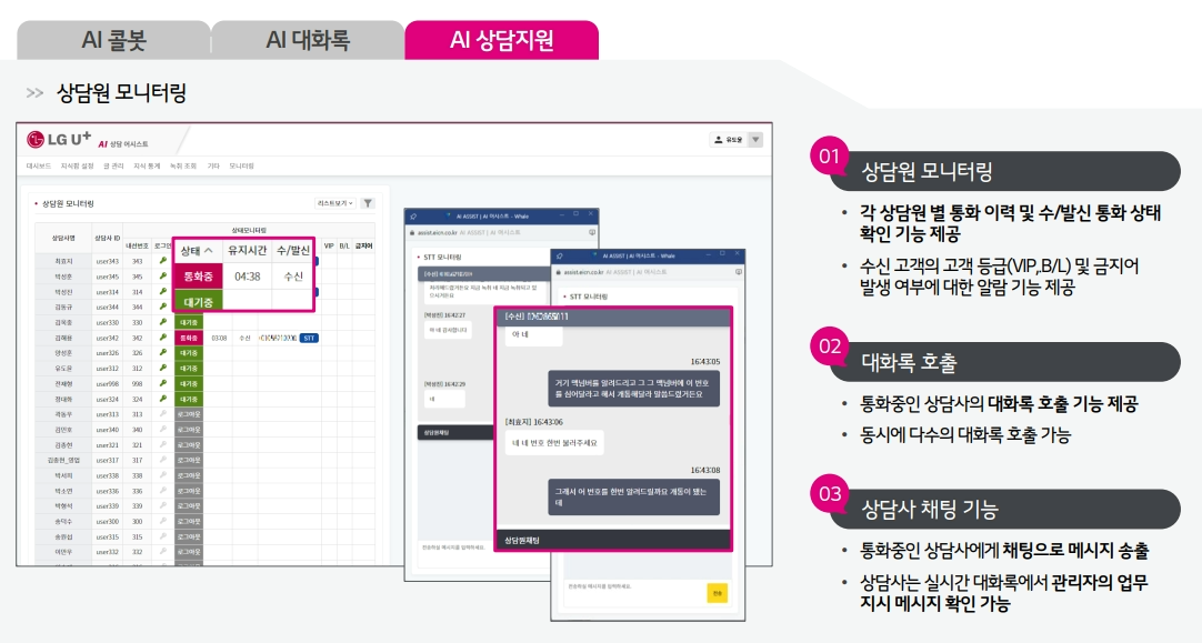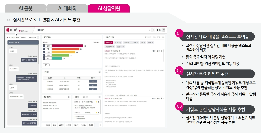 AI 콜봇 상담 내용을 실시간
