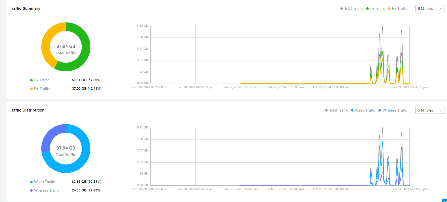 장비별 사용량과 인터넷 트래픽을