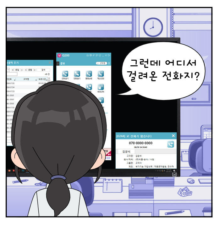 1.확인 기능 : 어떤 고객님께 전화가 왔는지 PC 에서 팝업창으로 확인이 가능합니다.