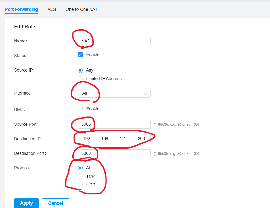 예시) 외부에서 내부 nas 서버에 접속시 nas 서버 ip를