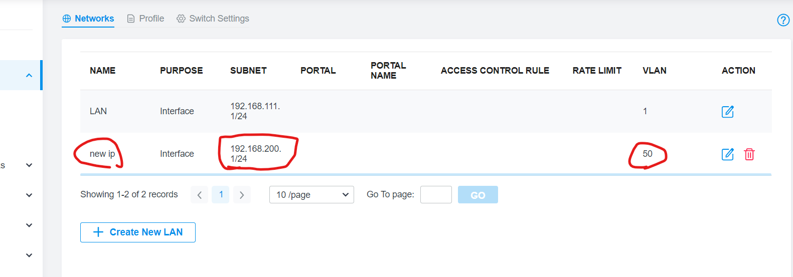 ip 대역은 192.168.200.1/24 이고  vlan 은 50번 입니다.