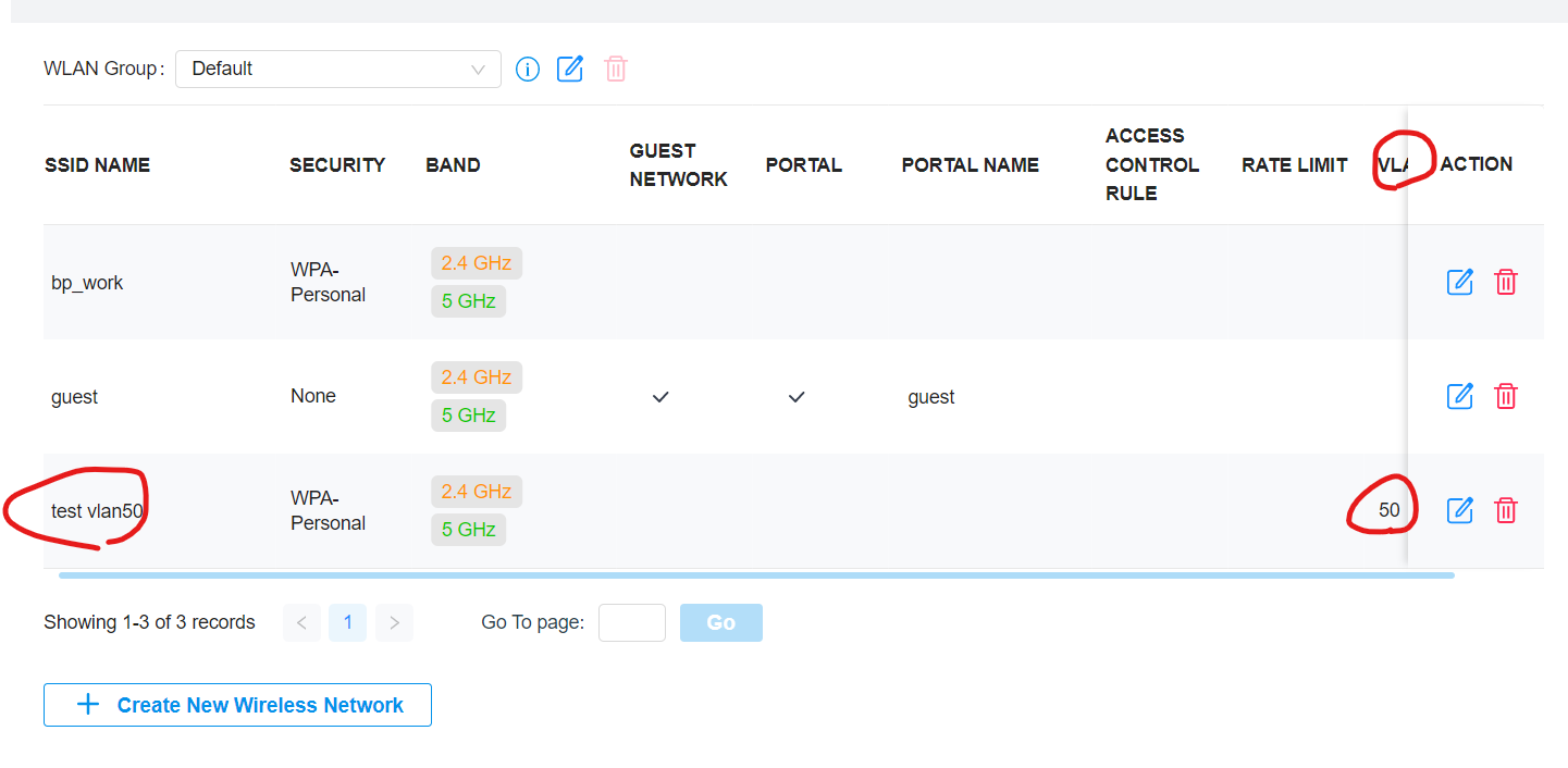 ssid 에 대한 vlan 은 50 으로 입력합니다.