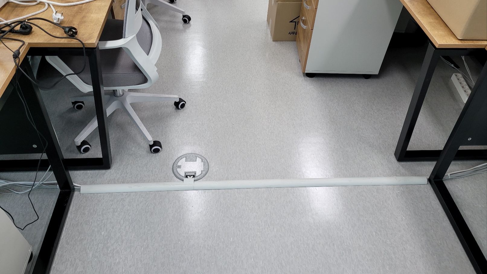 책상에 포설된 랜선을 전화기 LAN 선에 연결하고