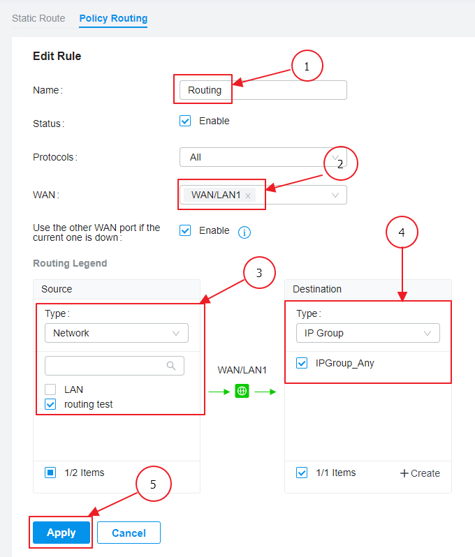Destination 에서는 IPGroup_Any 로 설정합니다.